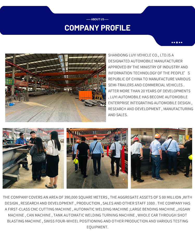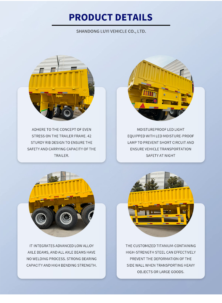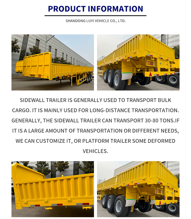 LUYI 13m 3nápravový návěs s ocelovo-hliníkovou tyčí, původně z provincie Shandong, Čína, je zbrusu nový návěs s bočními stěnami speciálně navržený pro kamionovou nákladní dopravu. Vyrobený z vysoce kvalitní oceli, přívěs vyvažuje konstrukční pevnost a odolnost, s maximálním efektivním užitečným zatížením 20 001-25 000 kg, snadno splňuje potřeby středně těžké a těžké nákladní dopravy.