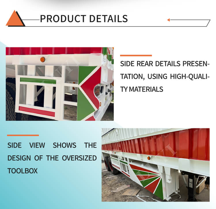 Výrobek má rozměry 12500×2500×1600 mm, je vybaven 3 nápravami (volitelně značky ZY, Fuhua, BPW) a duálními možnostmi mechanického/vzduchového odpružení pro zajištění hladké jízdy. Je spárován se standardními 28tunovými podpěrnými nohami JOST a pneumatikami o rozměrech 12R22.5/12.00R20/11R22.5, což dále zvyšuje bezpečnost nakládání a vykládání a přizpůsobuje se podmínkám vozovky. Listové pružiny 90×13×10 mm navíc zlepšují nosnou stabilitu a barvu lze přizpůsobit podle potřeby, což poskytuje spolehlivé a flexibilní řešení na míru pro logistiku a přepravu.