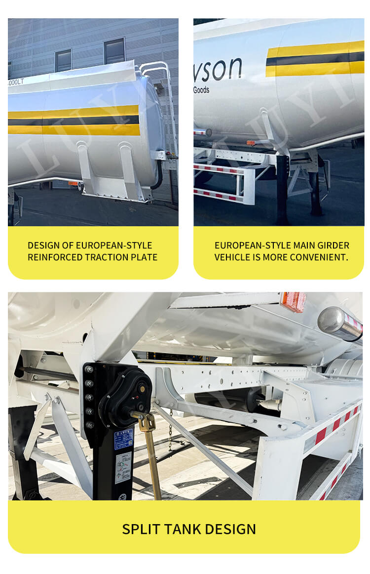 LUYI 3-nápravový 3-cisternový návěs s naftovou palivovou nádrží 42 000 l, zbrusu nové profesionální zařízení na přepravu ropy, se vyrábí v Shandongu v Číně. Jeho tělo je vyrobeno z oceli o rozměrech 1065025003800 mm. Konstrukce se 3 nádržemi umožňuje klasifikované plnění nafty a velká kapacita 42 000 l v kombinaci s maximálním užitečným zatížením 5 001 až 10 000 kg vyhovuje potřebám přepravy ropy v malých až středních sériích.
