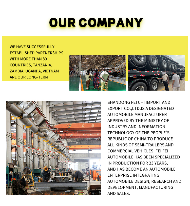 Naše továrna vyrábí nejen traktory, ale také sklápěče, kropicí vozy, autojeřáby, míchačky, sklápěcí návěsy, cisternové návěsy, nízkopodlažní návěsy, návěsy na odstraňování prachu atd. Naše továrna je rozsáhlá a dokáže přizpůsobit různé produkty podle různých požadavků zákazníků