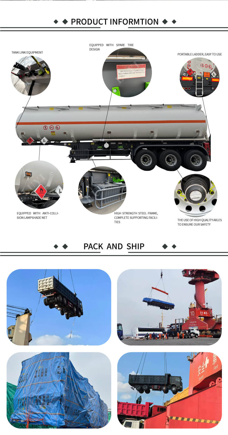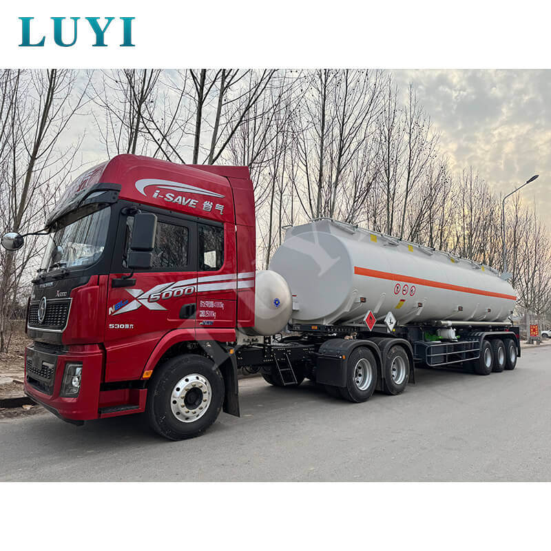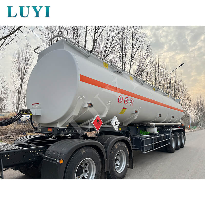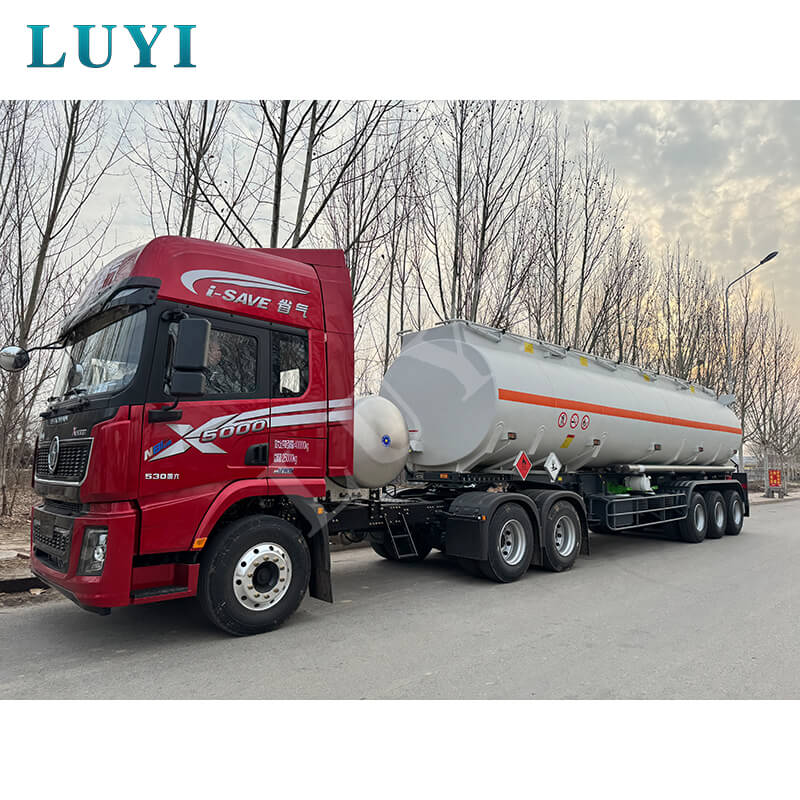 Třínápravový návěs s 30 000litrovou potravinářskou nádrží na olej Luyi, pocházející z provincie Shandong v Číně, je spolehlivou volbou pro efektivní a bezpečné nákladní návěsy. S rozměry 12 500 × 2 500 × 3 600 mm je vyroben z uhlíkových ocelových nebo hliníkových materiálů, kombinující výhody robustnosti a nízké hmotnosti, a má maximální efektivní užitečné zatížení 60 tun, což umožňuje stabilní přepravu médií, jako je nafta, benzín, ropa a ropa.