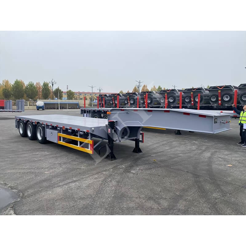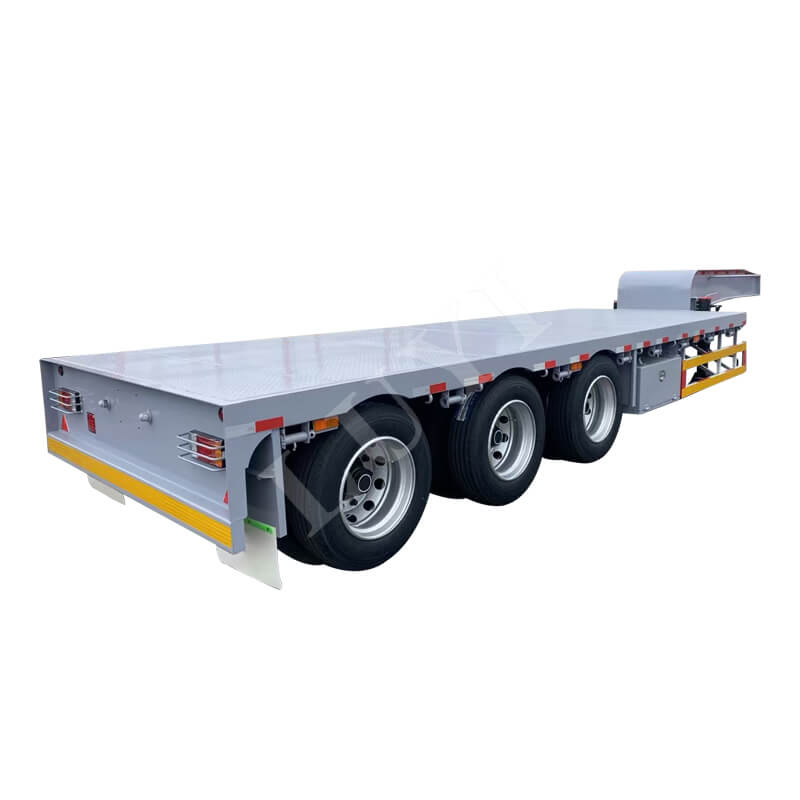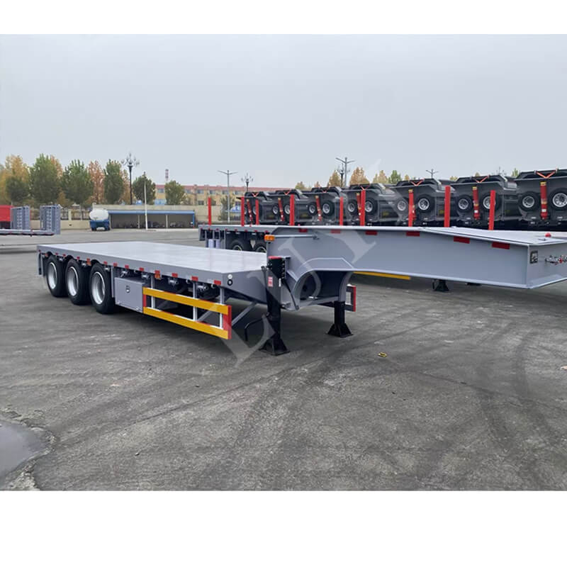 Přívěs nabízí rozměry 11500/12500/13000×3000×1750 mm, které jsou navíc přizpůsobitelné. Je vybaven listovými pružinami 90 mm (šířka) × 13/16 mm (tloušťka) × 10 vrstev a nápravy lze volit od 13/16t značky FUWA, což zajišťuje stabilní a spolehlivý provoz. Brzdový systém využívá reléové ventily pro citlivou odezvu; královský čep je ve specifikaci JOST 2 palce (50 mm) nebo 3,5 palce (90 mm) a podvozek používá dvourychlostní typ JOST 28 tun pro snadné ovládání. Barvy lze přizpůsobit tak, aby vyhovovaly různým scénářům přepravy.