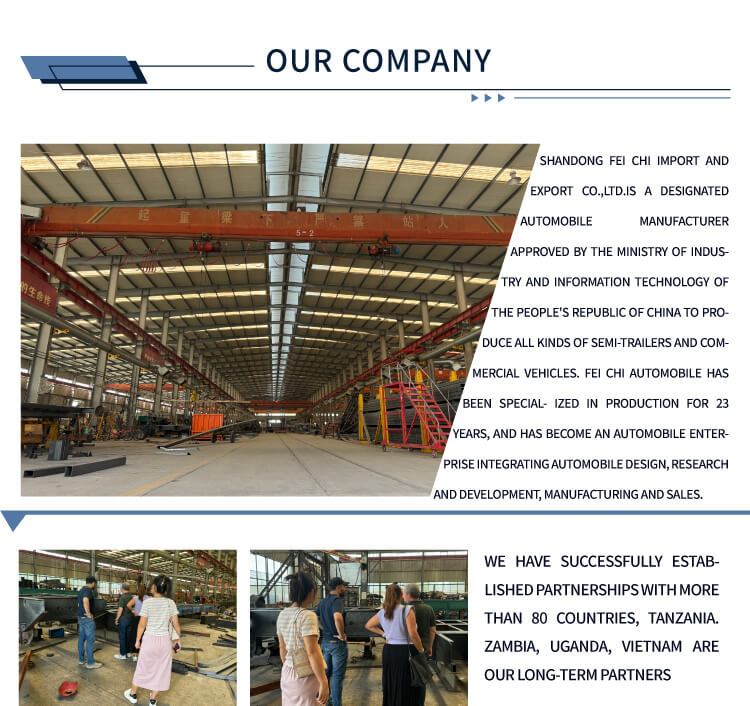 Naše továrna vyrábí nejen traktory, ale také sklápěče, kropicí vozy, autojeřáby, míchačky, sklápěcí návěsy, cisternové návěsy, nízkopodlažní návěsy, návěsy na odstraňování prachu atd. Naše továrna je rozsáhlá a dokáže přizpůsobit různé produkty podle různých požadavků zákazníků