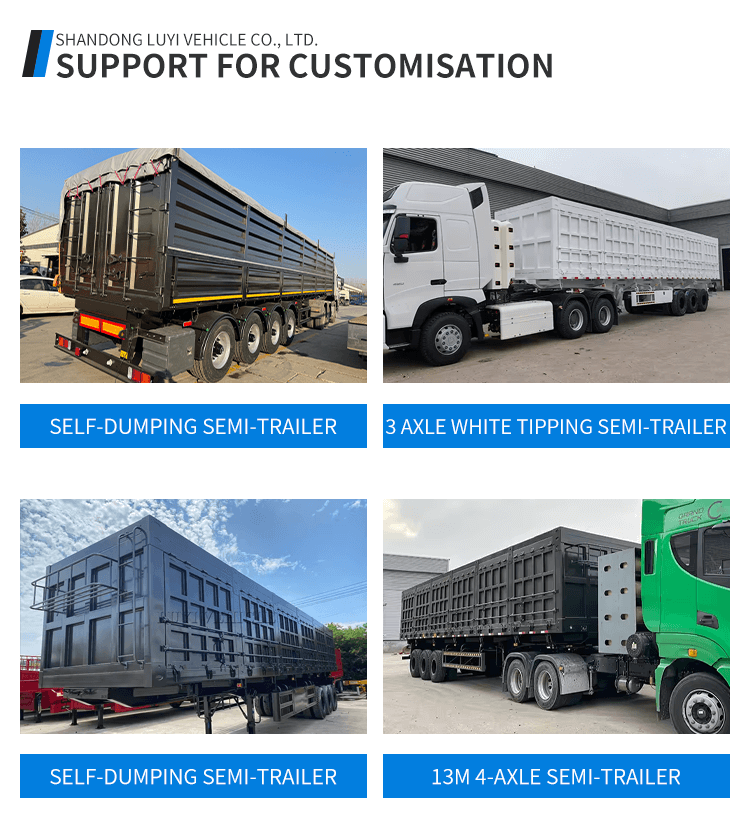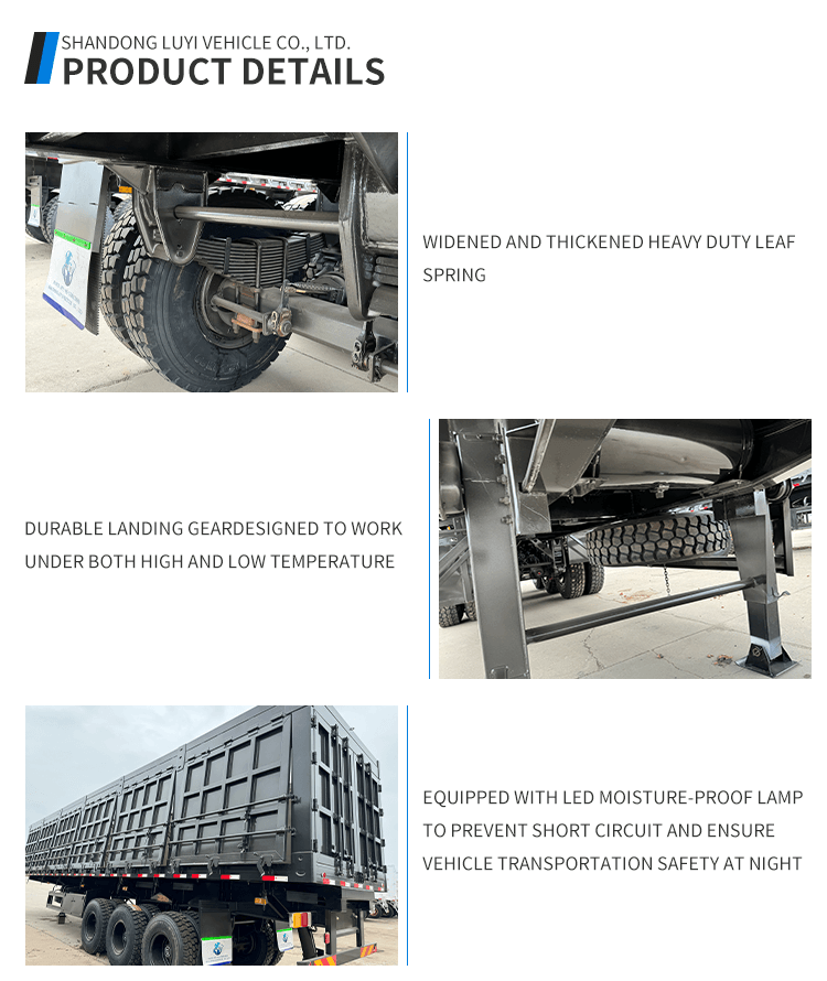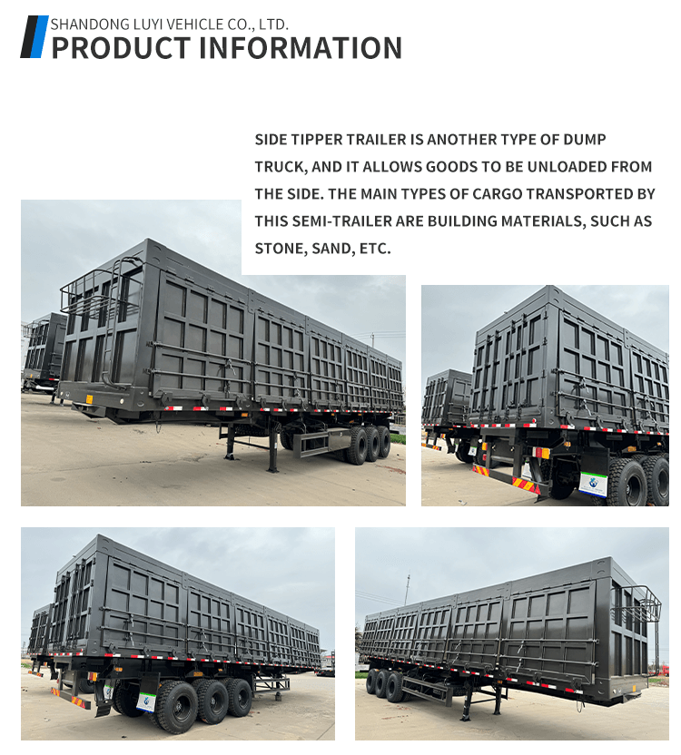 Tento 3nápravový 40tunový sklápěcí návěs od společnosti LUYI je vysoce výkonným řešením pro těžkou přepravu. Pochází z čínského Shandongu a vyznačuje se zcela novou konstrukcí z prvotřídní oceli, která zajišťuje odolnost, aby vydržela náročné přepravní podmínky.