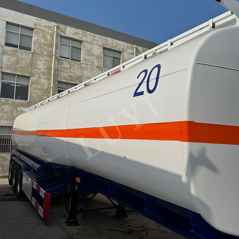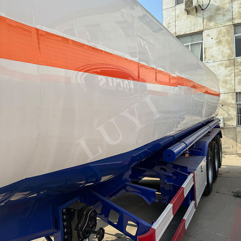 Třínápravový 45 000litrový 5komorový návěs s nádrží na olej Luyi je nový těžký návěs skříňového typu se specifikacemi 12500×2500×3600 mm, nosností 50 tun a je vhodný pro přepravu kapalin, jako je nafta.