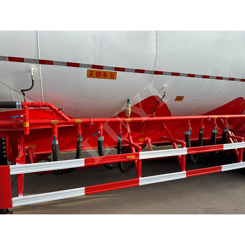 Přívěs je vyroben výhradně z vysoce kvalitní oceli a má 16# kanálovou ocel pro své boční nosníky, vyznačuje se pevnou konstrukcí a vynikající nosností. Jeho maximální efektivní užitečné zatížení dosahuje 80 tun a nosnost je 50 CBM, což může uspokojit poptávku po velkoobjemové přepravě cementového prášku. Vozidlo je vybaveno 3 nápravami a má pneumatiky 12R22,5 a ráfky 9,00-22,5. Systém odpružení využívá mechanické vzduchové odpružení, vyvažující jízdní stabilitu a účinek tlumení nárazů. Nohy jsou standardní specifikace 28 tun, aby byla zajištěna bezpečnost parkování. Důvěryhodnější je, že produkt je dodáván s 6letou zárukou, která poskytuje komplexní ochranu přepravních operací uživatelů od kvality až po poprodejní servis.