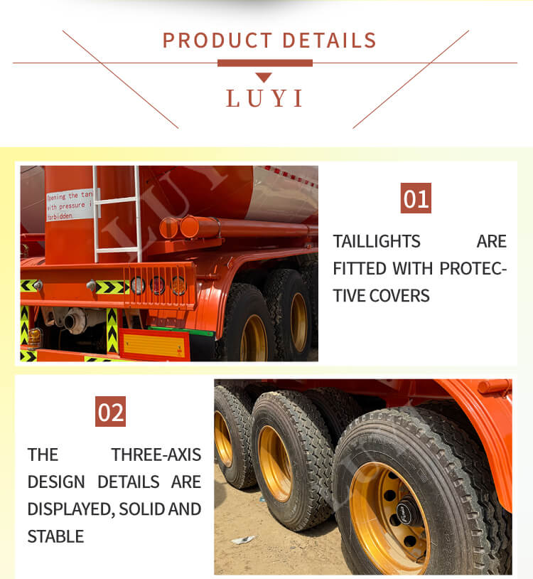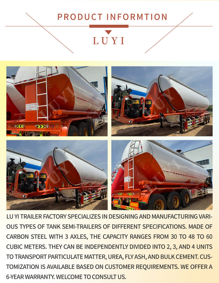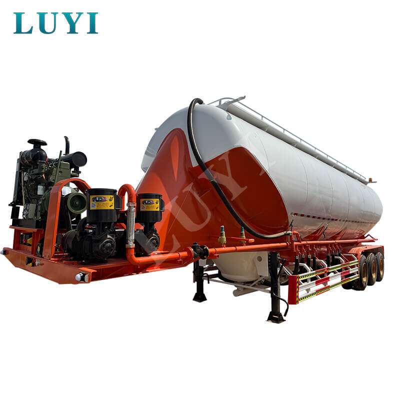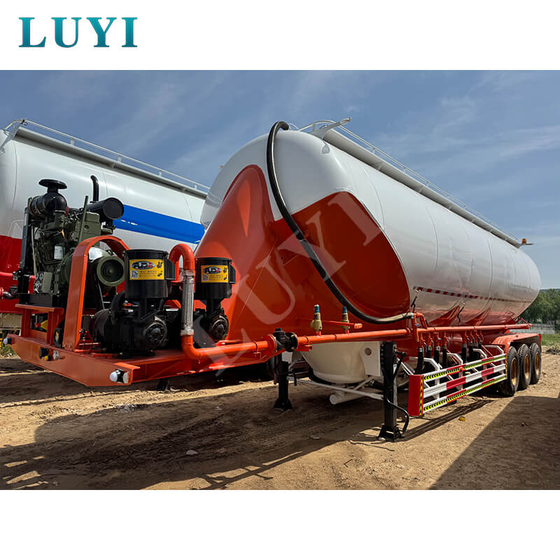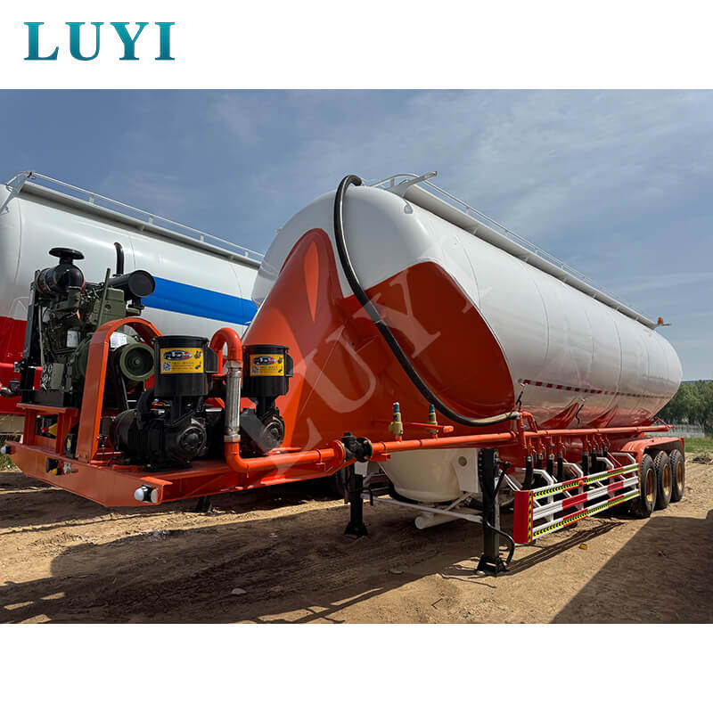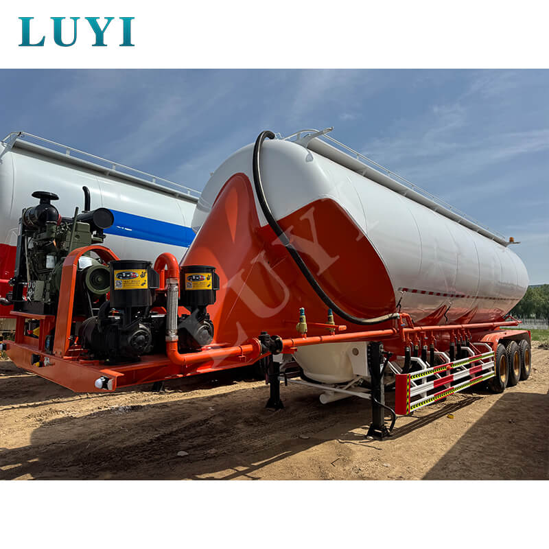 Třínápravový 50tunový cisternový návěs na cement V-Type LUYI pocházející z provincie Shandong v Číně je vysoce účinný nákladní návěs speciálně navržený pro přepravu hromadného cementového prášku, známý také jako práškový cisternový vůz, který přesně splňuje potřeby scénářů přepravy nákladu.