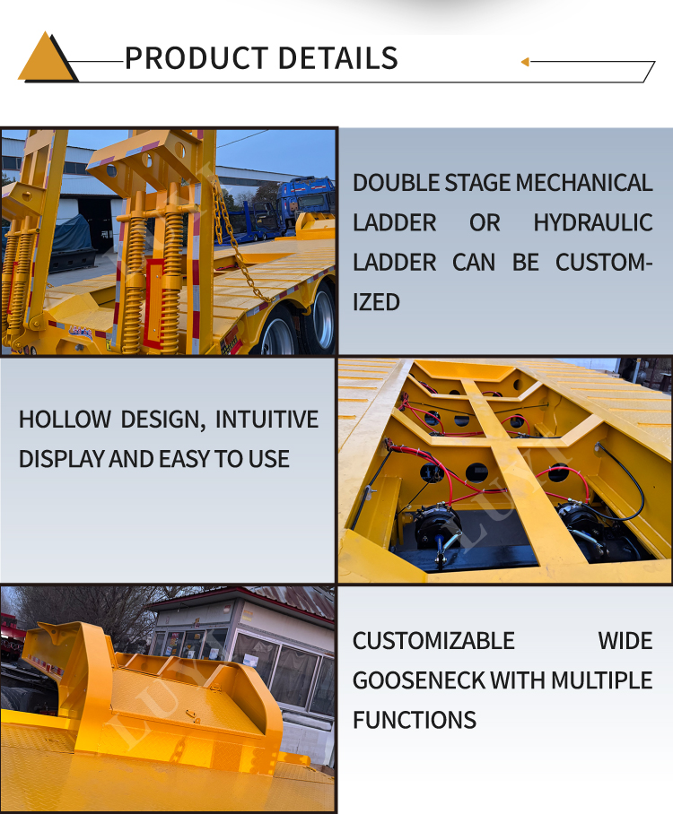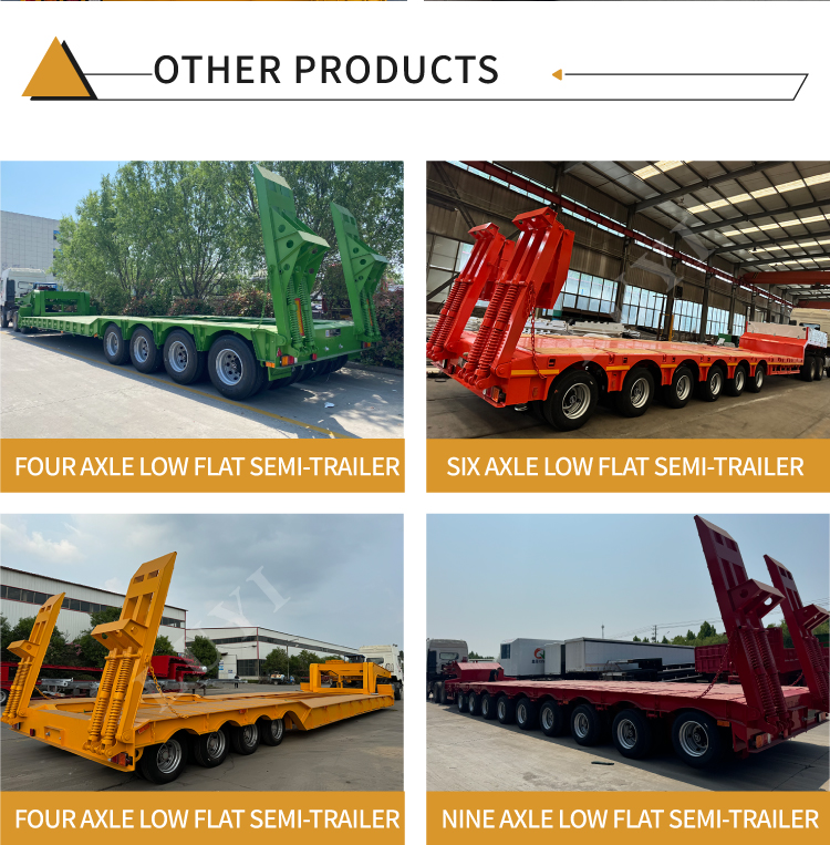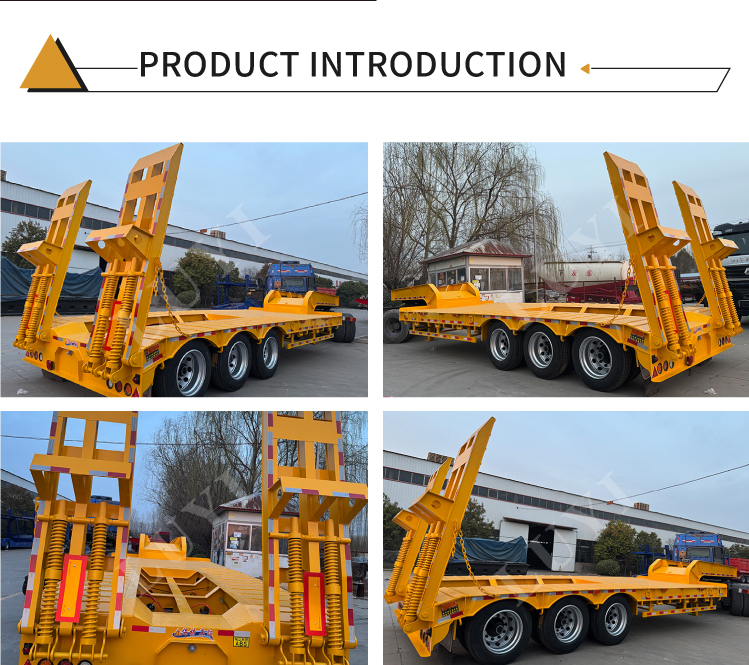 Přívěs je vybaven 3 prémiovými nápravami Fuwa nebo BPW a nabízí flexibilní možnosti odpružení (mechanické nebo vzduchové) pro stabilní jízdu na různých silnicích. Dodává se s pneumatikami 12R22.5/12.00R20/11R22.5, hydraulickým žebříkem pro pohodlné nakládání/vykládání těžkého vybavení a standardním 28tunovým podvozkem pro bezpečné parkování. 2palcový (50 mm) nebo 3,5palcový (90 mm) královský kolík JOST zajišťuje pevné spojení s traktory, zatímco přizpůsobitelné barvy splňují požadavky na personalizaci. Odolný, přizpůsobivý, je ideální pro efektivní přepravu těžkých nákladů.