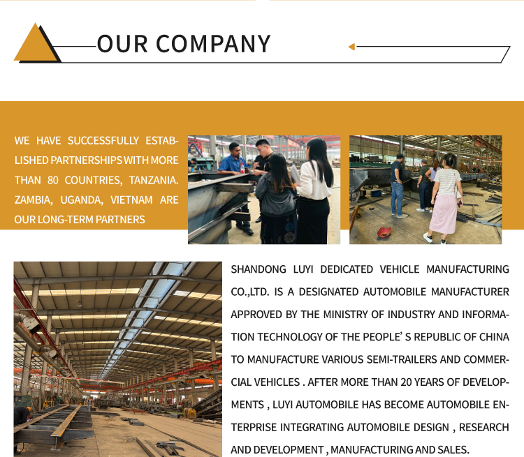 Naše továrna vyrábí nejen traktory, ale také sklápěče, kropicí vozy, autojeřáby, míchačky, sklápěcí návěsy, cisternové návěsy, nízkopodlažní návěsy, návěsy na odstraňování prachu atd. Naše továrna je rozsáhlá a dokáže přizpůsobit různé produkty podle různých požadavků zákazníků
