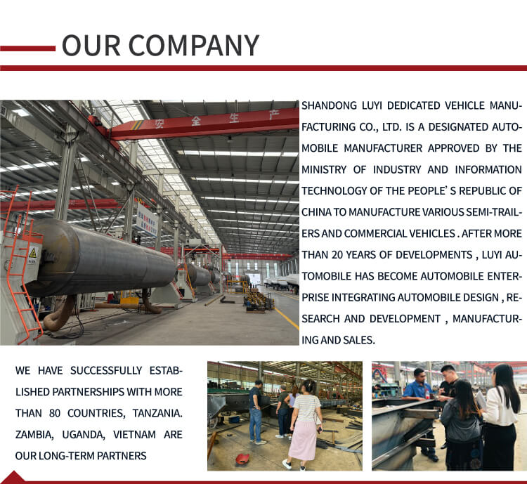 Třínápravový návěs s nádrží na olej z uhlíkové oceli LUYI o objemu 40 000 litrů, vyrobený v provincii Šan-tung v Číně, je účinný nákladní návěs pro přepravu paliva. Je vyroben z uhlíkové oceli, je robustní a odolný, s maximálním efektivním užitečným zatížením přes 30 000 kg a nosností v rozsahu od 20 do 60 metrů krychlových, schopných uspokojit různé potřeby přepravy paliva.