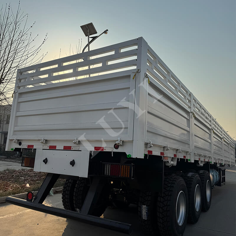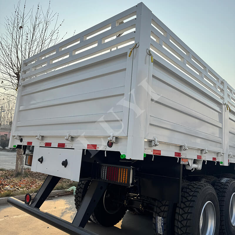 Vozidlo je vyrobeno převážně z oceli, ve zcela novém stavu, se spolehlivou kvalitou. Vybavený 3nápravovou konstrukcí, v kombinaci se systémem odpružení listovými pružinami a volitelným mechanickým odpružením nebo vzduchovým odpružením zajišťuje stabilitu a nosnost při jízdě s nosností až 30 tun. Specifikace 12500x2500x2100 mm poskytuje dostatečný ložný prostor, který zvládne nejen přepravu volně loženého zboží, ale lze jej přizpůsobit i překládce kontejnerů, s širokou škálou aplikačních scénářů. Jeho jedinečná funkce samovykládání výrazně zlepšuje efektivitu nakládání a vykládání zboží, snižuje náklady na pracovní sílu a dobu nakládání/vykládání. Ať už jde o přepravu stavebních materiálů nebo distribuci průmyslových hotových výrobků, 3nápravový boční návěs Luyi pro přepravu zboží se může spolehnout na svůj vynikající výkon a spolehlivou kvalitu, aby se stal schopným pomocníkem při přepravě logistiky.