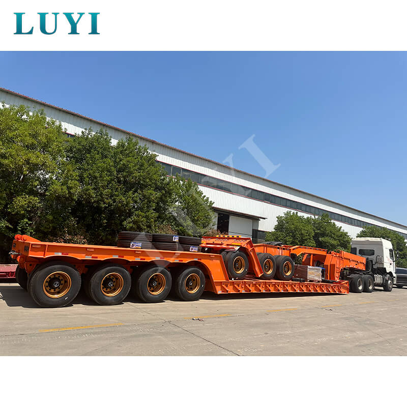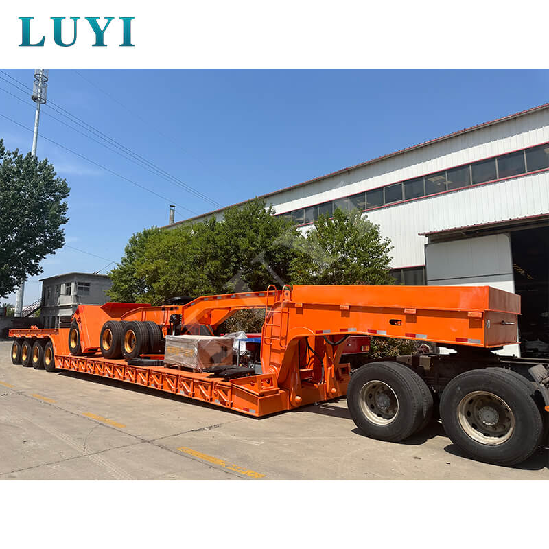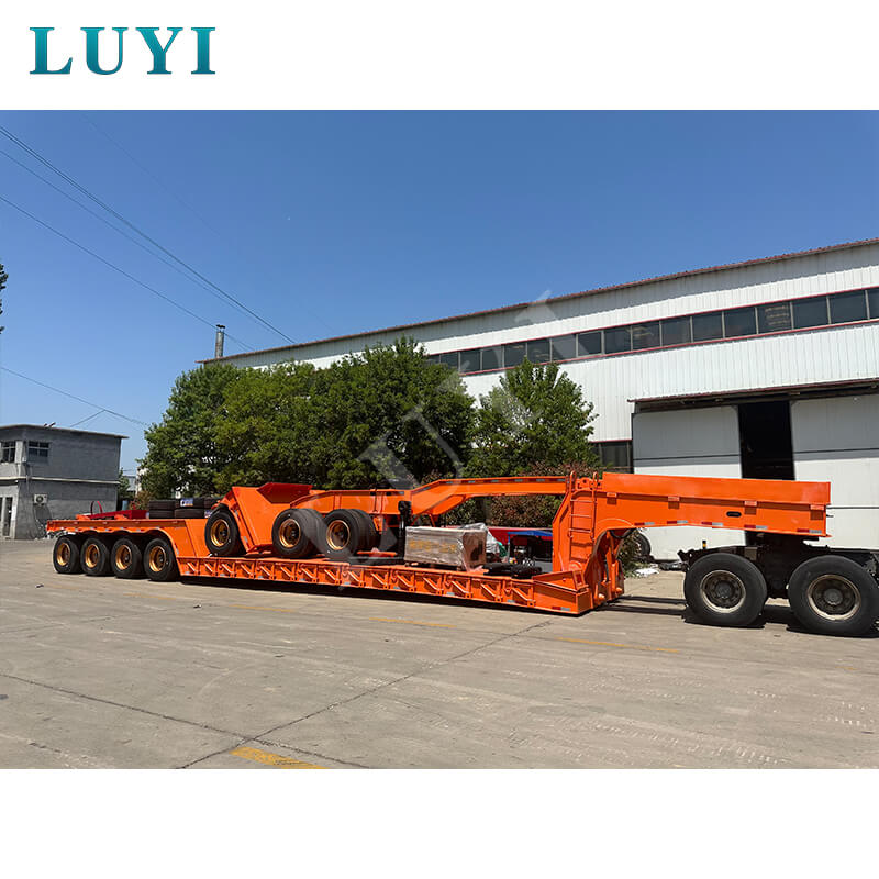 4nápravový 100tunový návěs s husím krkem Lowboy od LUYI VEHICLE je vysoce výkonný nákladní přívěs pocházející z provincie Shandong v Číně. Hlavní nosník je vyroben z vysoce kvalitní oceli a jeho hlavní nosník využívá ocel T700/Q345, která zajišťuje robustní a odolnou konstrukci. S nosností 100-120 tun a maximálním efektivním užitečným zatížením 120 000 kg snadno uspokojí potřeby těžké přepravy.