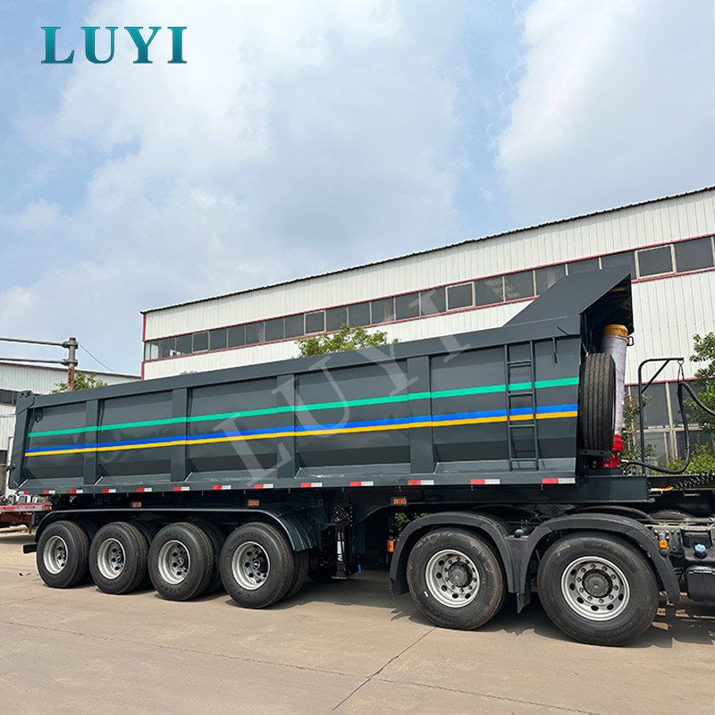4nápravový 100tunový hydraulický zadní sklápěcí návěs ve tvaru U od LUYI, původem z čínského Shandongu, je specializovaným nástrojem pro přepravu sypkého zboží, jako je písek, štěrk a uhlí. Je vyroben z vysoce kvalitní uhlíkové oceli, má přesné rozměry 12050x2550x3600MM a maximální nosnost 100 tun, jehož vysoký výkon splňuje potřeby těžké přepravy.