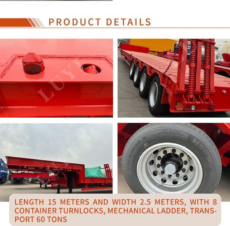 Luyi 4nápravový 60tunový návěs s husím krkem, vyrobený v provincii Shandong v Číně, je nákladní přívěs určený pro přepravu těžkých nákladů. Těleso přívěsu je vyrobeno z vysoce kvalitní oceli s pevnou a odolnou konstrukcí. Jeho maximální efektivní užitečné zatížení nejen přesahuje 30 000 kg, ale také dosahuje 100 tun, snadno přepravuje různé těžké zboží a splňuje požadavky na vysoce intenzivní přepravu.