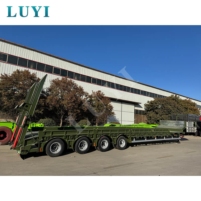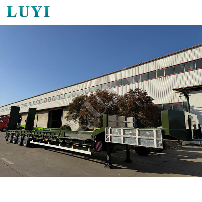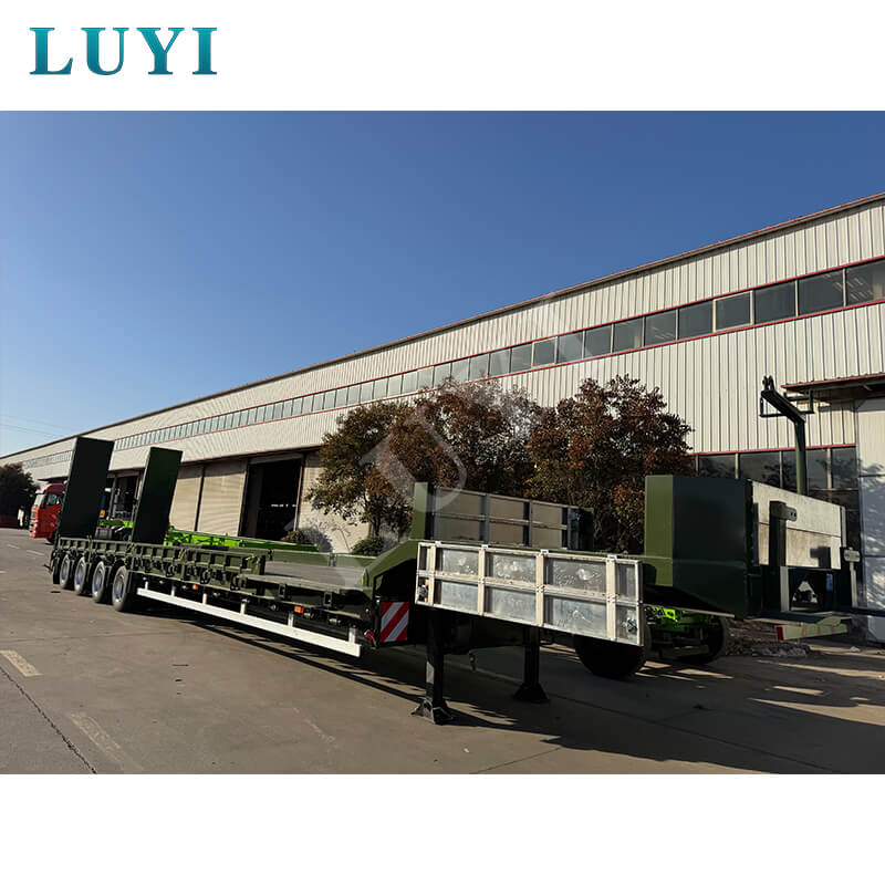 LUYI 4nápravový 60tunový nízkopodlažní návěs s husím krkem, zbrusu nový produkt z čínského Shandongu, je profesionální nákladní přívěs určený pro přepravu těžkých nákladů. Jako hlavní materiál používá vysoce kvalitní ocel se standardní velikostí 13 m × 3 m × 2,5 m a maximálním užitečným zatížením 60 tun, aby vyhověla potřebám těžké přepravy.
