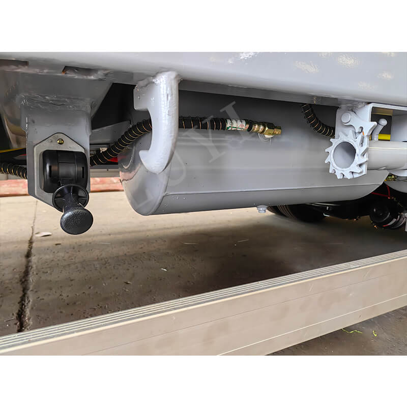 Brzdový systém má dvouřadý design, aby byla zaručena bezpečnost jízdy. Má standardní 28tunové podpěrné nohy pro stabilní podporu a královský čep lze vybrat jako 2palcový (50 mm) nebo 3,5palcový (90 mm) značku JOST, aby odpovídal různým traktorům. Barvu si mohou zákazníci přizpůsobit a splňují různé scénáře použití, což z ní činí efektivní a bezpečnou volbu pro těžké nákladní přívěsy.