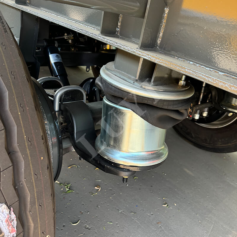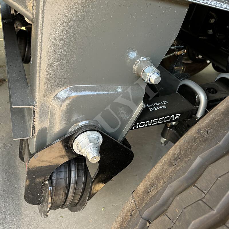 Vozidlo je vybaveno bezdušovými pneumatikami 12R22.5, které prošly několika mezinárodními certifikacemi včetně ECE, GCC, ISO a DOT. Tyto pneumatiky jsou odolné proti opotřebení, trvanlivé a snižují riziko prasknutí pneumatiky. Nabízí flexibilní konfigurace 2/3/4 náprav, spárovaných s 2palcovými (50 mm) nebo 3,5palcovými (90 mm) čepy JOST, které se přizpůsobí různým traktorům a splňují různé scénáře přepravy. Mechanický systém odpružení zajišťuje stabilní jízdu a konstrukce plného airbagu výrazně zlepšuje efektivitu vykládání a snižuje náklady na pracovní sílu.