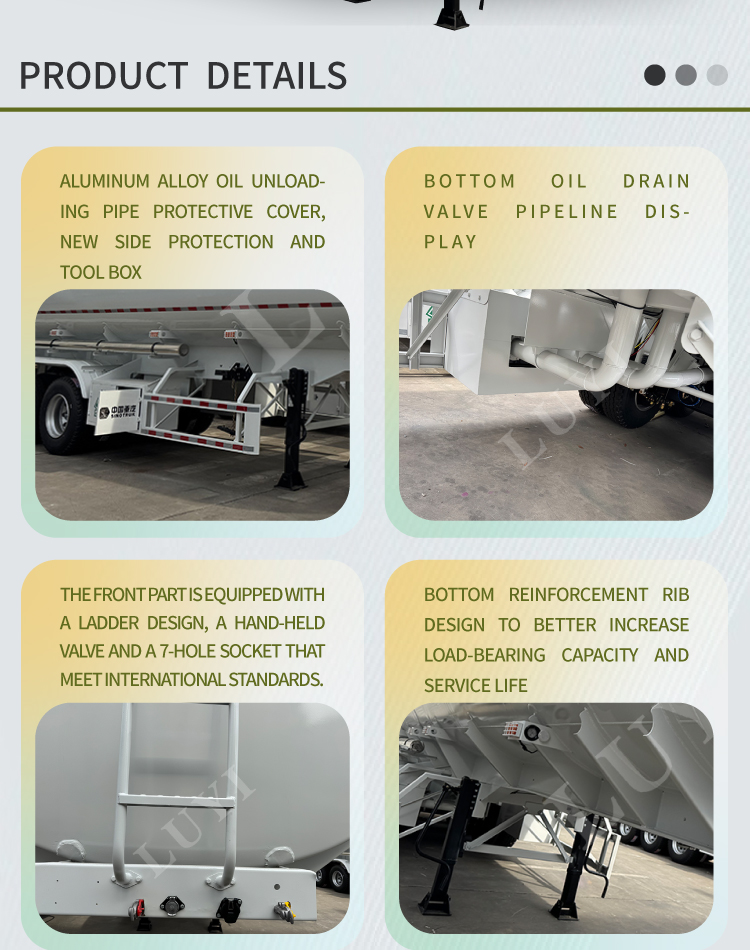Speciální návěsy pro přepravu paliva značky LUYI jsou plně vybaveny lehkými palivovými nádržemi z hliníkové slitiny odolnými proti korozi a musí být používány ve spojení s tahačem. Modely pokrývají široký rozsah kapacit od 24 000 do 50 000 litrů a zahrnují 3nápravové standardní verze a 3-prostorové víceproduktové verze s maximální nosností 32 000 kg. Malokapacitní modely jsou vhodné pro zásobování malých stanic na krátké vzdálenosti, zatímco vícekomorové velkokapacitní modely podporují přepravu více produktů na dlouhé vzdálenosti, plně splňující různorodé potřeby distribuce paliva čerpacích stanic, rafinerií a dalších.