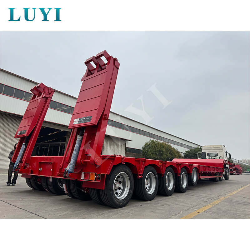 LUYI 5nápravový 180tunový 5řádkový 10nápravový Lowboy Trailer, původně vyráběný v provincii Shandong v Číně, je zbrusu nový návěs speciálně navržený pro použití s přívěsy nákladních vozidel. Svou vysokou nosností a silnou stabilitou splňuje potřeby těžké přepravy.