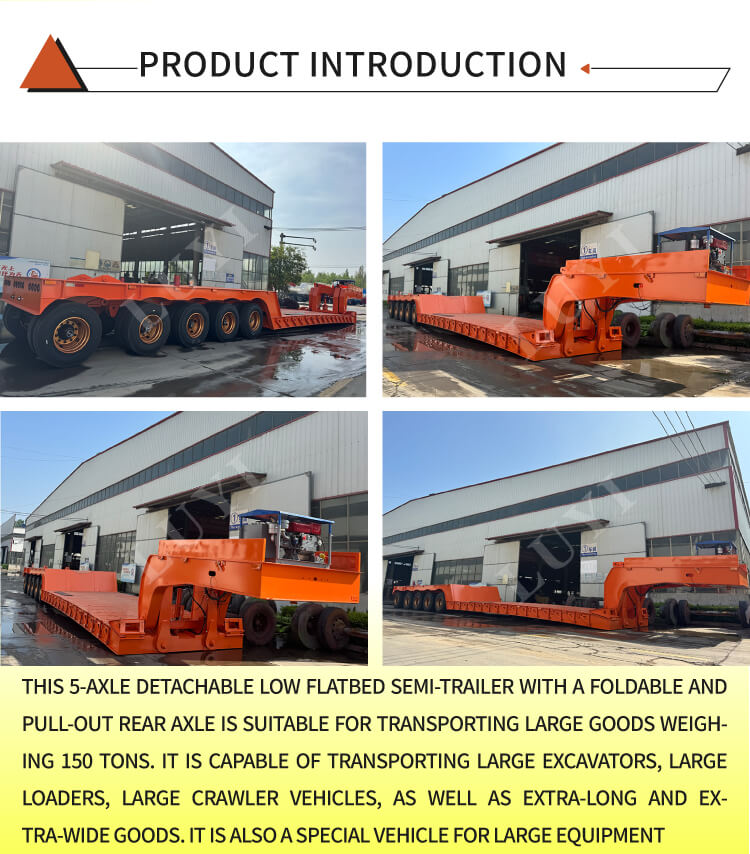 Vyrobeno z vysoce kvalitní oceli, má rozměr 17500×3000×1830 mm a maximální užitečné zatížení 100T, snadno zvládne přepravu velké a těžké techniky. Je vybaven 5 nápravami, k dispozici ve značkách FUWA, BPW nebo LUYI, spárované s pneumatikami 12R22.5. K dispozici jsou možnosti vzduchového i mechanického odpružení, které zajišťují stabilní jízdu a účinnou ochranu nákladu i při velkém zatížení.