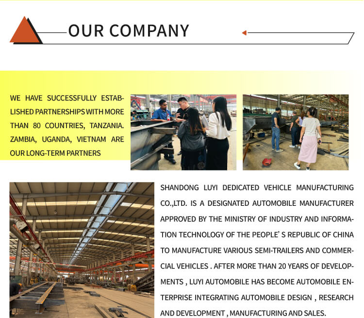 Naše továrna vyrábí nejen traktory, ale také sklápěče, kropicí vozy, autojeřáby, míchačky, sklápěcí návěsy, cisternové návěsy, nízkopodlažní návěsy, návěsy na odstraňování prachu atd. Naše továrna je rozsáhlá a dokáže přizpůsobit různé produkty podle různých požadavků zákazníků