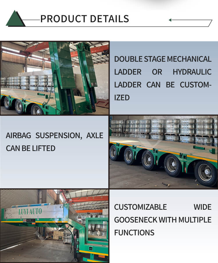 Jako nový produkt prošla jeho kvalita přísnou kontrolou, aby byl zajištěn spolehlivý výkon. Zároveň podporuje přizpůsobené barvy a může odpovídat exkluzivnímu vzhledu podle potřeb zákazníka, kombinuje praktičnost a personalizaci. Tento nízkopodlažní návěs může poskytnout stabilní a efektivní přepravní řešení, ať už jde o přepravu těžkého vybavení nebo nakládání hromadného nákladu.