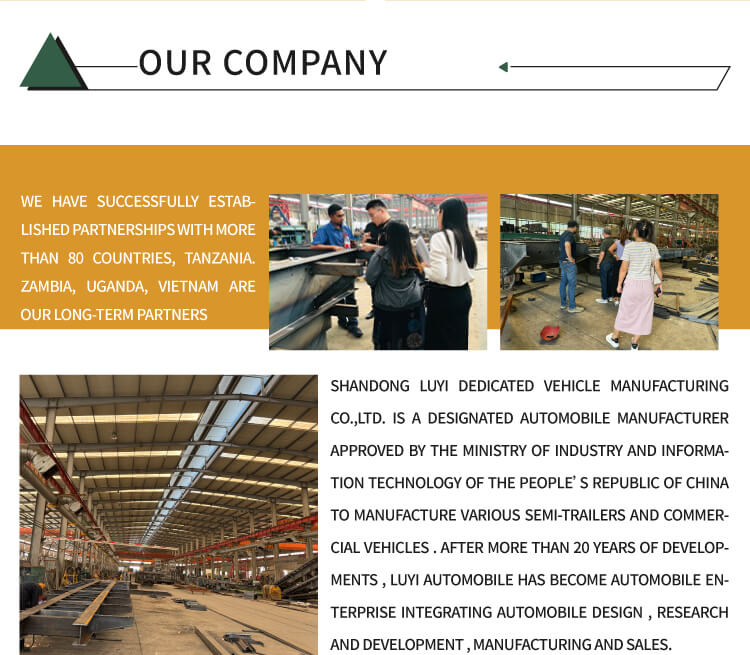 návěs luyi Manufacturing Co., LTD se specializuje na výrobu všech druhů návěsů nákladní auta s cisternami na cisterny na olej sklápěcí návěsy kontejnerové návěsy plošinové návěsy skeletové návěsy stodoly návěsy nízký panel