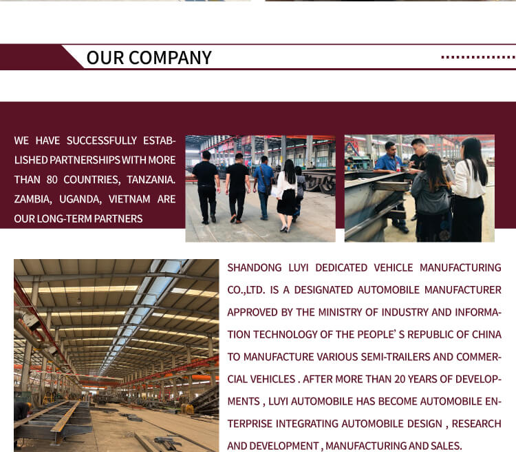 návěs luyi Manufacturing Co., LTD se specializuje na výrobu všech druhů návěsů nákladní auta s cisternami na cisterny na olej sklápěcí návěsy kontejnerové návěsy plošinové návěsy skeletové návěsy stodoly návěsy nízký panel