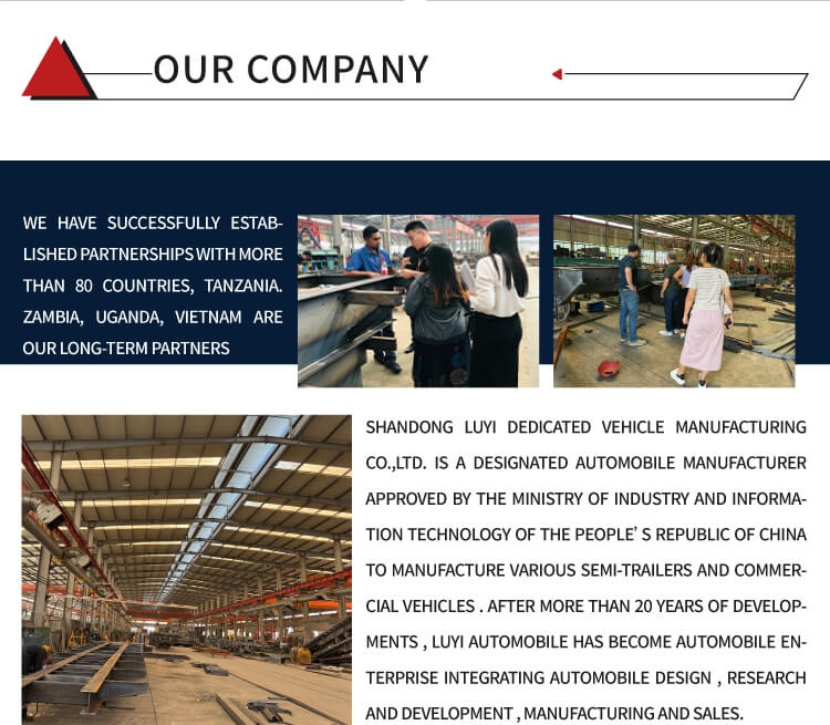 Naše továrna vyrábí nejen traktory, ale také sklápěče, kropicí vozy, autojeřáby, míchačky, sklápěcí návěsy, cisternové přívěsy, nízkopodlažní návěsy, návěsy na odklízení prachu atd. Naše továrna je rozsáhlá a dokáže přizpůsobit různé produkty podle různých požadavků zákazníků.