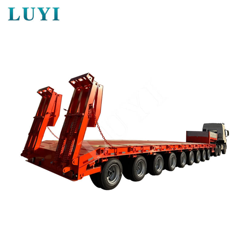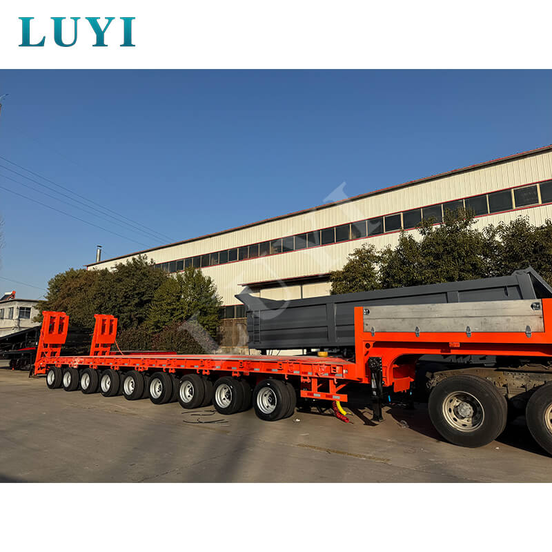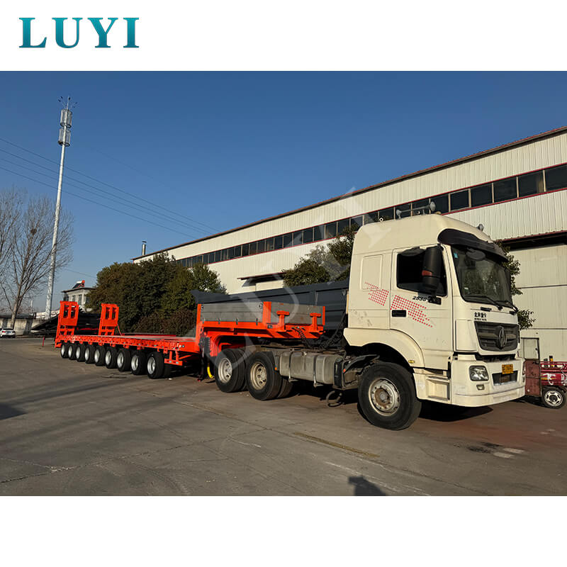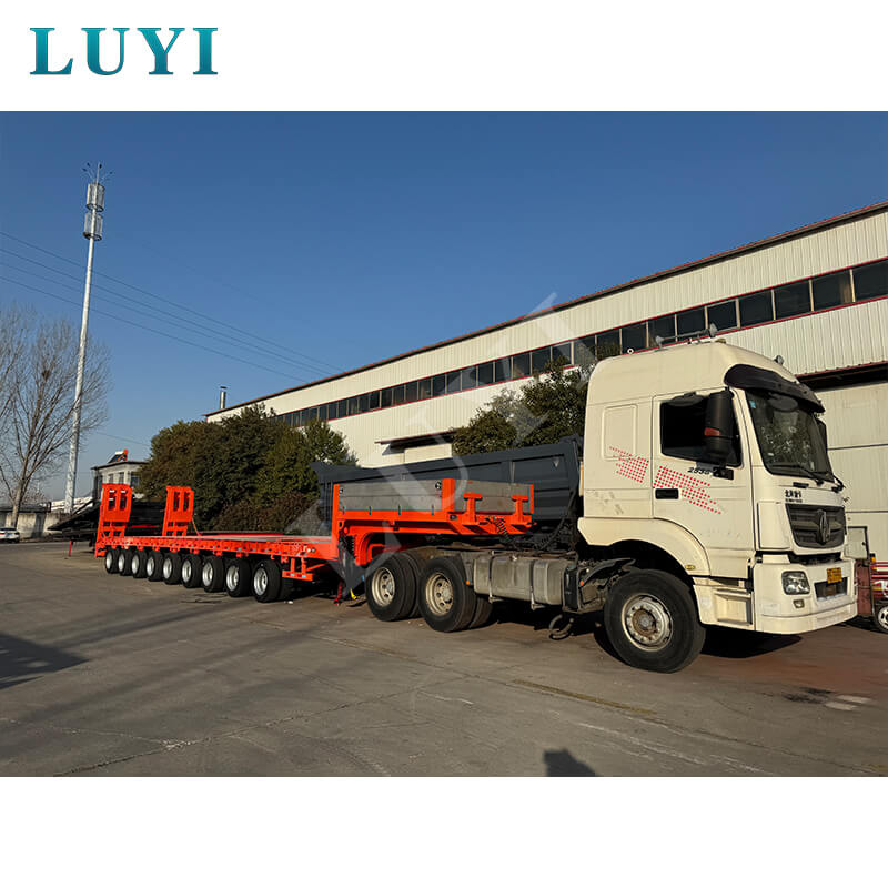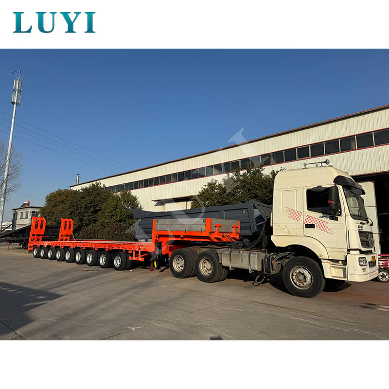 9nápravový 100tunový návěs s husím krkem z čínského Shandongu Luyi je vysoce kvalitní návěsové zařízení navržené speciálně pro přepravu těžkých nákladů. Kompatibilní s tažením nákladních vozidel, měří 17x2,55x1,5m. Je vybaven 9nápravovou konfigurací a volitelným mechanickým nebo vzduchovým odpružením, jeho nosnost se pohybuje od 60 do 120 tun, s maximální nosností 100 tun, poskytuje robustní ložiskový výkon.