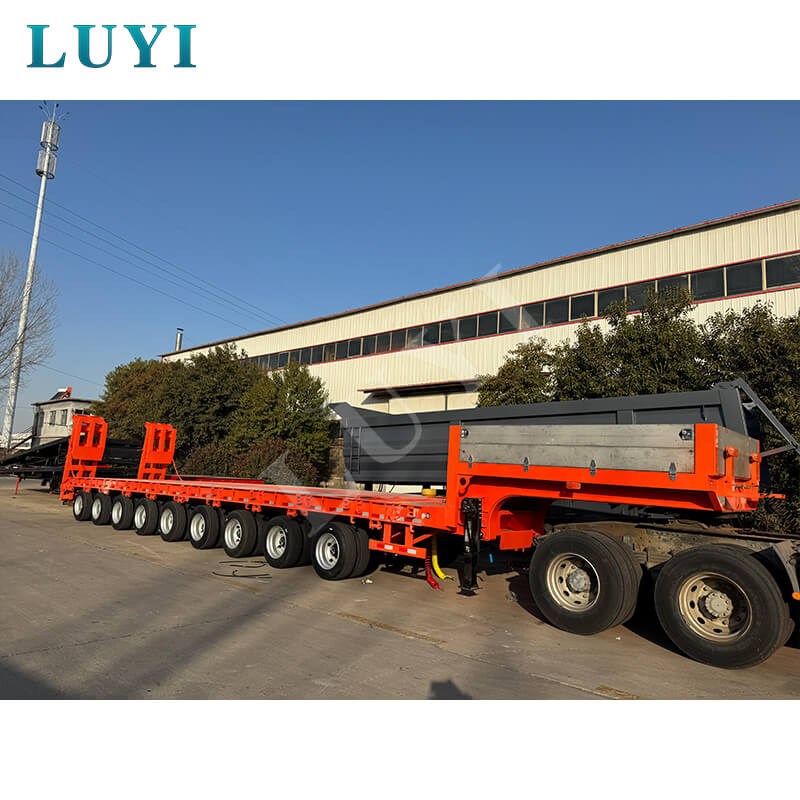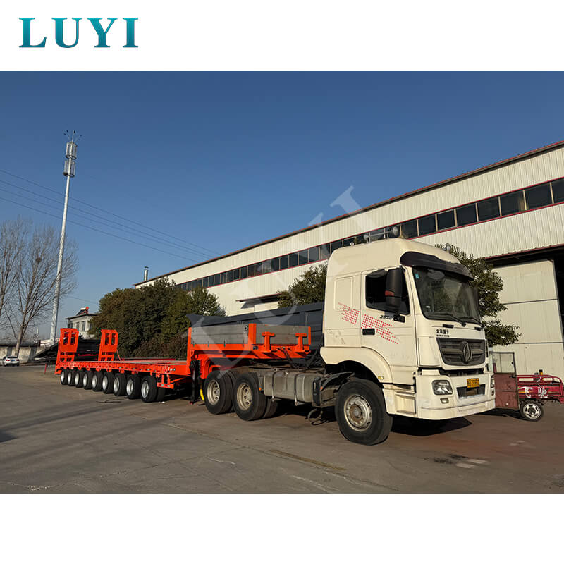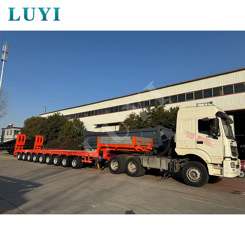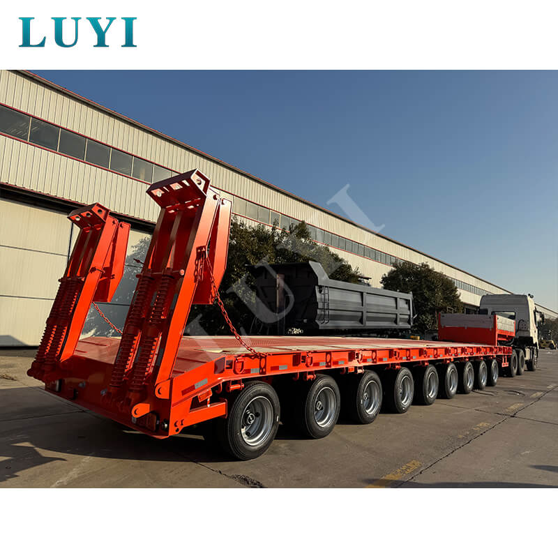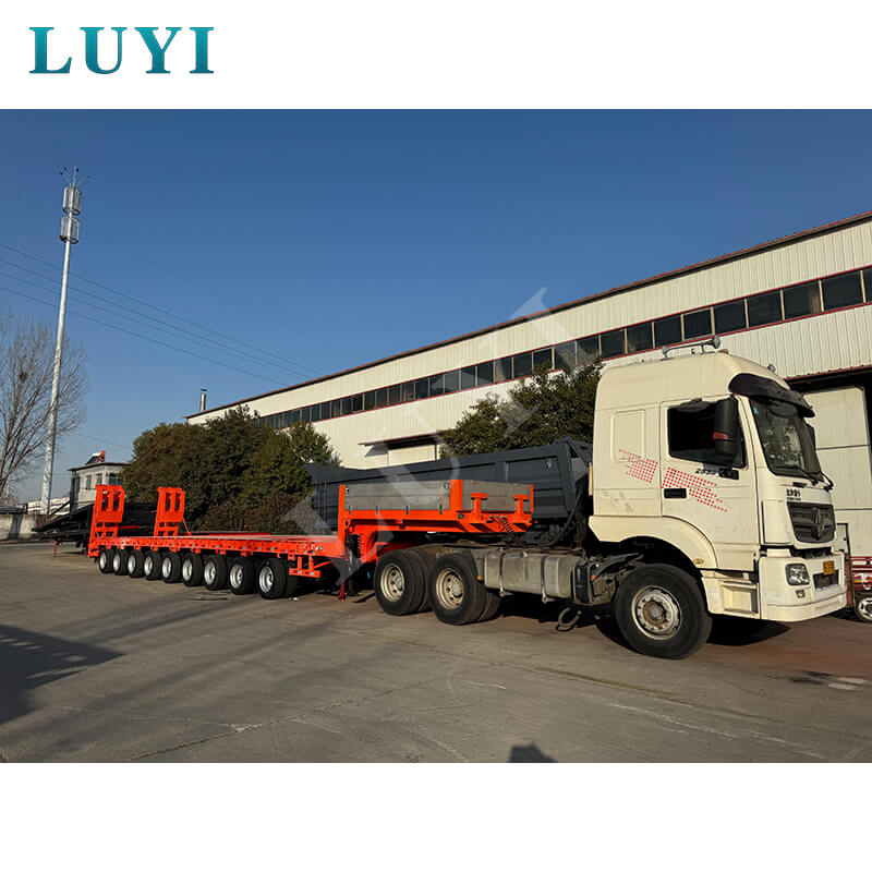 9nápravový 100tunový návěs s husím krkem z čínského Shandongu Luyi je vysoce kvalitní návěsové zařízení navržené speciálně pro přepravu těžkých nákladů. Kompatibilní s tažením nákladních vozidel, měří 17x2,55x1,5m. Je vybaven 9nápravovou konfigurací a volitelným mechanickým nebo vzduchovým odpružením, jeho nosnost se pohybuje od 60 do 120 tun, s maximální nosností 100 tun, poskytuje robustní ložiskový výkon.