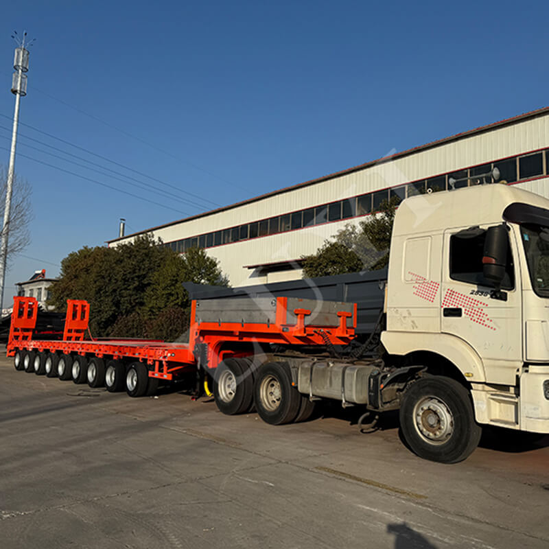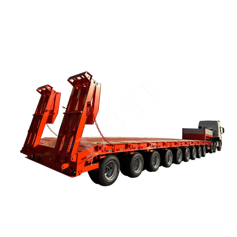 Přívěs je vybaven pneumatikami 12R22.5 a sladěnými s listovými pružinami ve specifikacích 90mm13mm10 nebo 90mm16mm10, což zajišťuje přepravní stabilitu a odolnost. Žebřík je k dispozici v mechanické nebo hydraulické verzi pro pohodlné a efektivní nakládání/vykládání. Přizpůsobitelné barvy karoserie vyhovují individuálním potřebám a také přichází s 6letou zárukou, která nám poskytuje spolehlivou jistotuers. Je vhodný pro dálkovou přepravu různé těžké techniky a hromadného nákladu.
