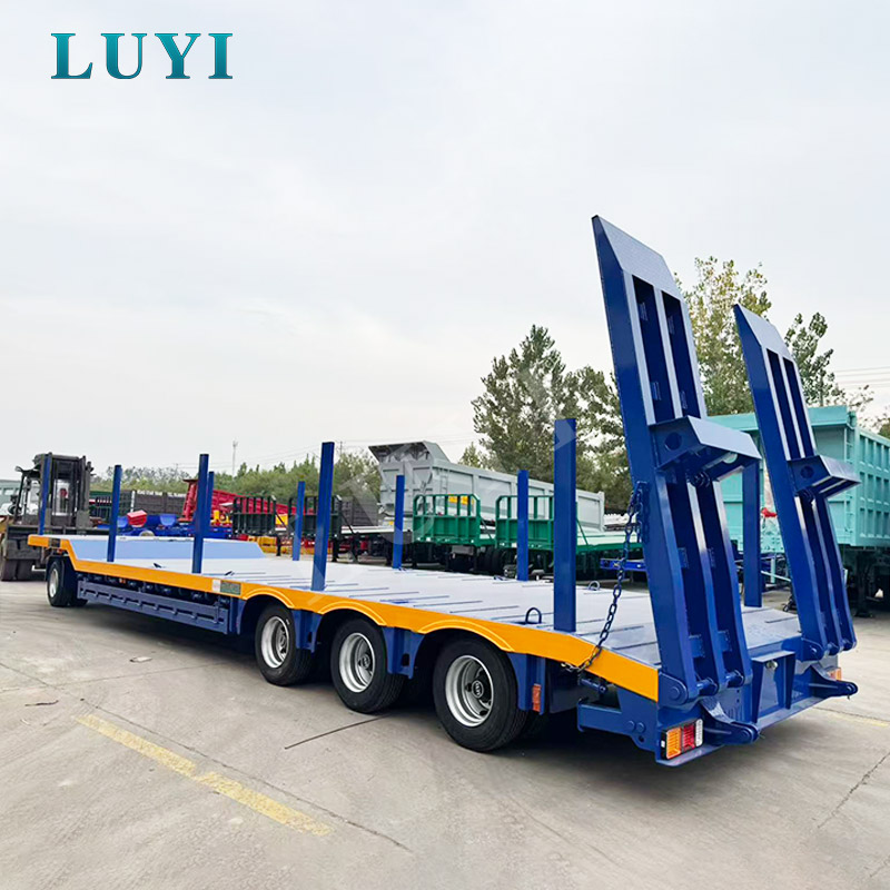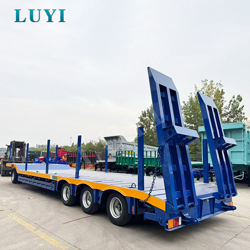 LUYI 3-axle Lowbed Truck Semi Trailer je vysoce výkonný dopravní prostředek pocházející z čínského Shandongu, určený pro přepravu těžkých nákladů, jako jsou rypadla.