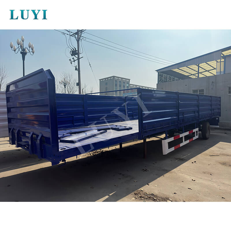 3-osý odnímatelný panelový návěs Luyi pocházející z provincie Shandong v Číně je vysoce kvalitní nákladní přívěs (nazývaný také valník) vhodný pro efektivní nákladní dopravu. Jeho tělo je vyrobeno z vysokopevnostní oceli spojující odolnost se stabilní nosností. S maximálním efektivním užitečným zatížením 60 tun může flexibilně přepravovat kontejnery a volně ložené zboží a snadno uspokojit různé logistické potřeby.
