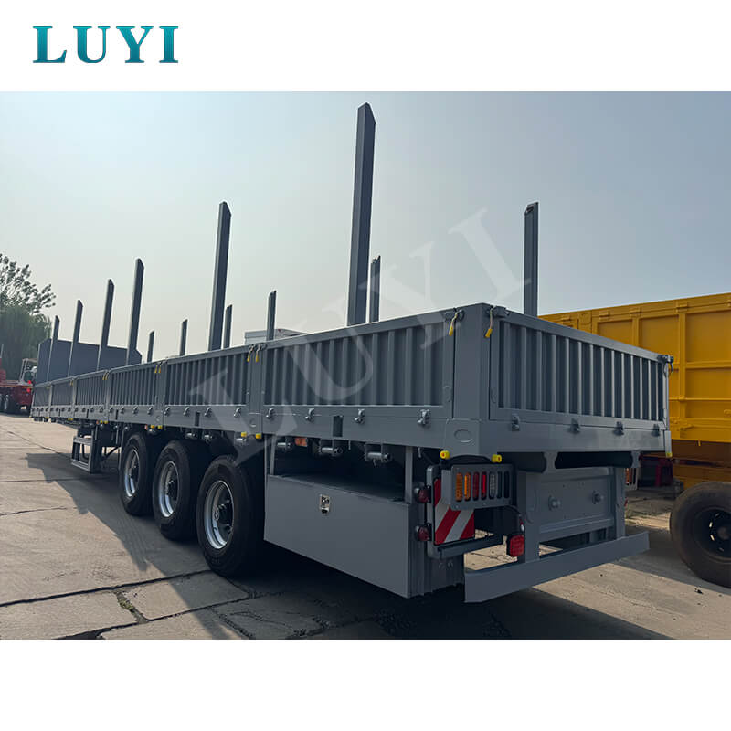 3nápravový návěs s bočními stěnami se sloupky od značky LUYI se sídlem v čínském Shandongu je optimální volbou pro přepravu hromadného nákladu a kontejnerů. Je vyroben z vysoce kvalitní oceli, vyznačuje se přesnými rozměry 12 500 x 2 500 x 1 600 mm a maximální nosností 60 tun, jehož výkonná nosnost může snadno splnit různé požadavky na přepravu těžkého nákladu.