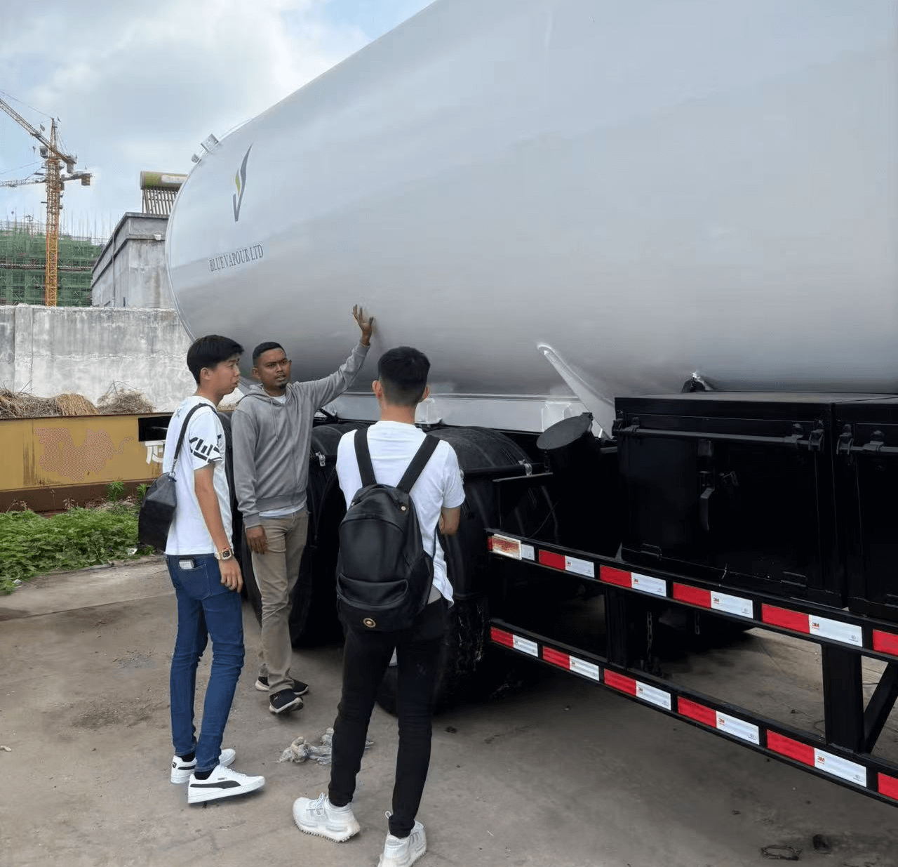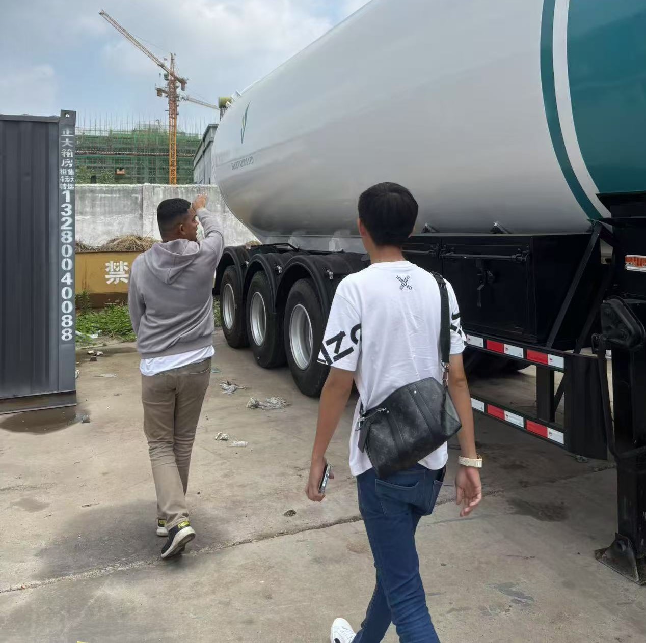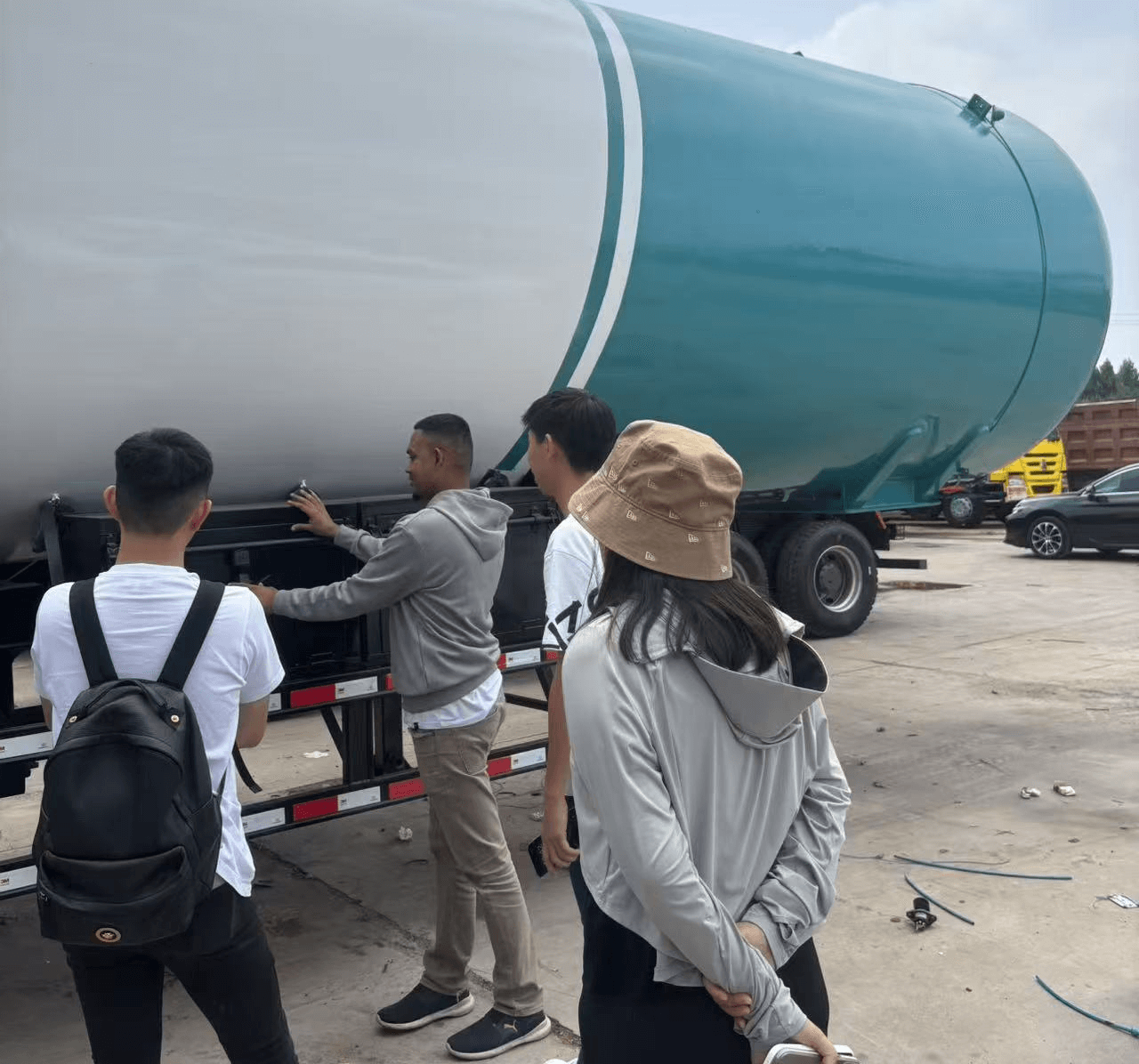 Po vstupu do tovární oblasti šel liberijský klient rovnou na inteligentní výrobní linku nádrže semifinále. Od přesného řezání laserového prázdného, automatizovaného provozu svařování těla nádrže a poté až po modulární sestřih v procesu konečného montáže, výrobní standardy továrny Shandong Luyi propřívěs o ropné nádržepřiměl klienta opakovaně. Klient pečlivě sledoval proces montáže nádrže na přívěsu olejové nádrže, občas fotografoval detaily s mobilním telefonem a také si vyměnil s techniky o automatizované efektivitě výroby nádrže přívěsu a vysoce ocenil takový efektivní výrobní režim.