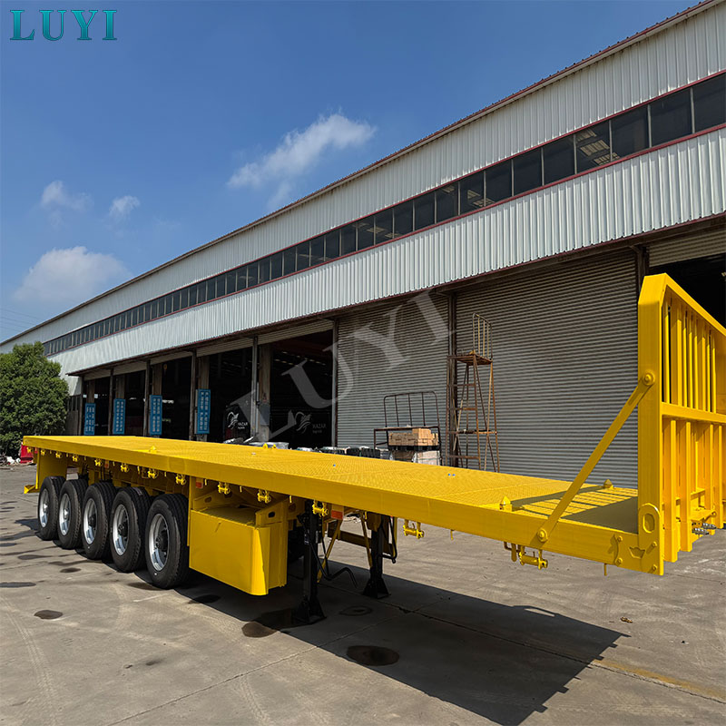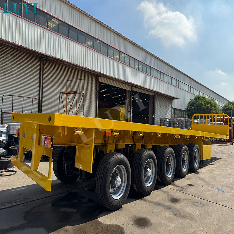 Není to tak dávno, co se ve výrobním závodě společnosti LUYI v Shandongu odehrál důstojný, ale nenápadný ceremoniál přepravy. Flotila vyráběná na zakázku5-nápravové valníkové návěsystál v úhledném uspořádání, připraven nalodit se na nákladní loď směřující do Tuniska v Africe a vydat se na životně důležitou misi na podporu rozvoje infrastruktury země. To představuje klíčový milník pro značku LUYI v posilování její přítomnosti na zámořských trzích a také slouží jako živá ukázka špičkového těžkého vybavení vyrobeného v Číně, které vstupuje na globální scénu, aby podpořilo africké infrastrukturní projekty. Jako vlajková loď od LUYI si 5nápravové valníkové návěsy vysloužily širokou chválu v mnoha zemích a regionech po celém světě díky své robustní nosnosti, spolehlivé kvalitě a flexibilní přizpůsobivosti. 12500 mm × 2500 mm × 1550 mm. Tento design nejen vyhovuje normám tuniské silniční dopravy, ale také maximalizuje nakládací potenciál pro těžké materiály. Pokud jde o základní konfigurace, 5nápravové valníkové návěsy jsou vybaveny 13T vysokopevnostními nápravami a 10 sadami listových pružin, spárovaných s volitelnými systémy mechanického nebo vzduchového odpružení, což umožňuje 5nápravovým valníkovým návěsům pokrýt maximální nosnost v rozsahu od 30T do 100T. Ať už se jedná o velké strojírenské stroje, stavební ocel nebo dodávky infrastruktury, pětinápravové valníkové návěsy mohou zajistit stabilní a spolehlivou přepravu. 5nápravové valníkové návěsy jsou navíc vybaveny dvouřadým brzdovým systémem a 28tunovým standardním podvozkem v kombinaci s pneumatikami 12R22.5 pro vysoké zatížení, které komplexně zajišťují bezpečnost přepravy na dlouhé vzdálenosti a operací na staveništi – od účinnosti brzdění po stabilitu při parkování.