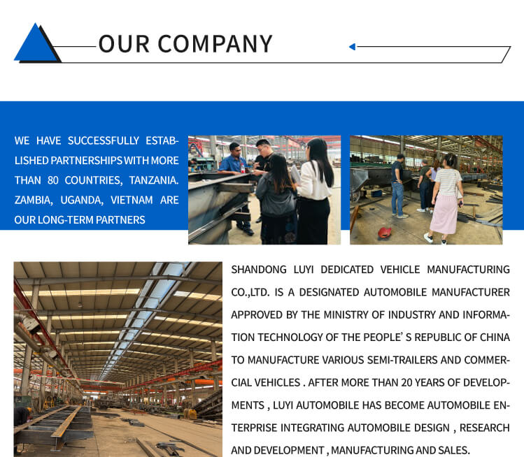 Naše továrna vyrábí nejen traktory, ale také sklápěče, kropicí vozy, autojeřáby, míchačky, sklápěcí návěsy, cisternové návěsy, nízkopodlažní návěsy, návěsy na odstraňování prachu atd. Naše továrna je rozsáhlá a dokáže přizpůsobit různé produkty podle různých požadavků zákazníků